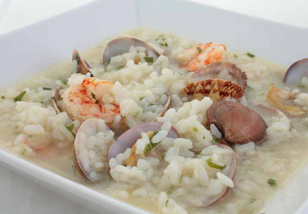 Picamos la cebolla y el ajo y lo sofreímos con un poco de aceite en menú Grill con tapa abierta. Una vez sofrito ponemos el arroz y dejamos un minuto según lo revolvemos. Añadimos el resto de ingredientes, cerramos y programamos menú Horno con potencia 6 durante 18 minutos.