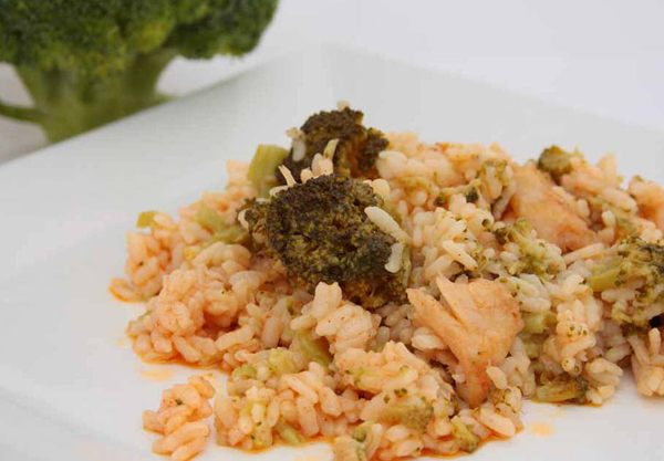 El bacalao, puede ser salado, entonces pondremos el bacalao en agua durante 24 horas. Cambiaremos este agua dos o tres veces. También puede utilizarse lomos congelados. En cualquier caso lo limpiaremos bien quitándole la piel y todas las espinas. Lo partiremos en trozos pequeños. En la cubeta programamos menú sofreír tapa abierta y ponemos un poco de aceite que cubra el fondo y vamos poniendo todos los ingredientes, comenzando por el ajo muy picadito y lo dejamos sofreír, seguidamente añadimos el arroz, el pimentón, el perejil, el brócoli y dejamos para el final el bacalao y el agua. Cerramos y dejamos finalizar el menú Chef Cocción a 145º durante 9 minutos.
